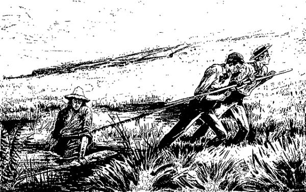 Reube obeyed instantly, seeing that his former intention had been a mistake. Mart Gandy wadded home the buckshot in his great gun barrel. The charge was a terrific one. Will stooped, like a wild-cat crouching for a spring. The Dido rushed straight on, and both Reube and Will declared afterward that they knew just what it was like to charge a battery.