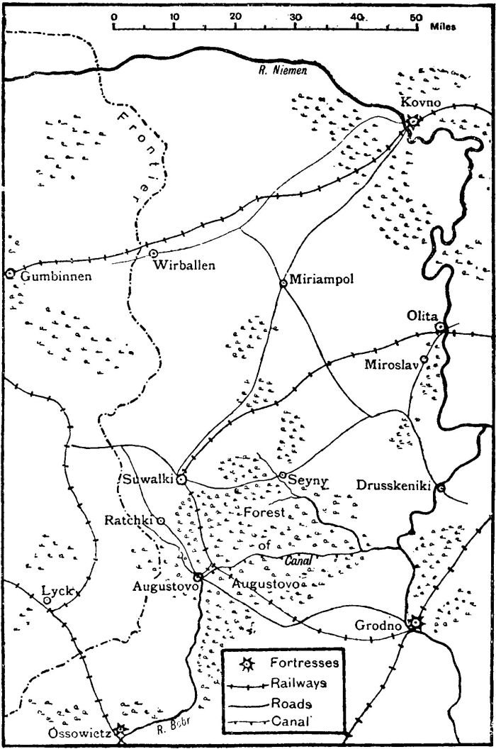 What is the initiative in war? It is not the offensive, which is merely the power to attack. An army may consistently have the offensive and be the attacker throughout a whole campaign, and yet never possess the initiative. Perhaps it may be most simply defined as the power to dictate to the enemy the form of action; to lay down the type of the coming battle. When combined with the offensive it is a terrible weapon. Moltke had both at Sedan, as had Napoleon at Jena, and Lee at Chancellorsville and Thomas at Nashville. But a general acting on the defensive may have the initiative. Wellington never lost it during his early years in the Peninsula, though his main strategy was defensive. Kutusov when he led Napoleon to Moscow had the initiative, for he compelled his great enemy to conform to his own ideas of war. In the present campaign Tannenberg is a good example of a fight where the victor had both the offensive and the initiative. On the retreat from Mons the Germans had both; at the Marne the Allies snatched both from them; but, once the retreating forces were entrenched on the Aisne, General Joffre had only the offensive remaining. The Germans secured again the initiative—that is, they compelled their adversaries to adopt the form of battle on which they had decided: a trench battle, well suited to their own stubborn and mechanical genius. A war of entrenchments began which was to last for many weary months, and which can only be paralleled from the annals of mediæval contests.