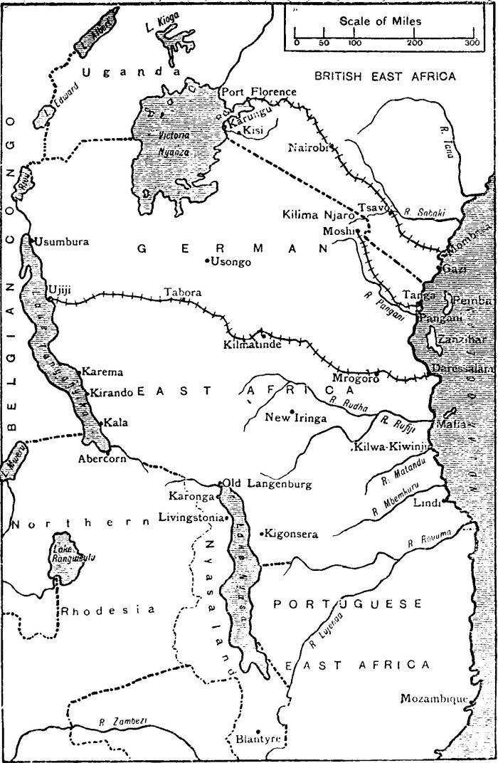 The third method of weakening British sea power was by the attack upon merchantmen by light cruisers. Apparently Germany sent forth no new vessels of this type after the outbreak of war, and her activities were confined to those which were already outside the Narrow Seas, especially those under Admiral von Spee’s command at Kiao-chau. So far as September is concerned, we need mention only the Emden and the Koenigsberg. The former was to provide the world with a genuine tale of romantic adventure, always welcome among the grave realities of war, and in her short life to emulate the achievements and the fame of the Alabama. She appeared in the Bay of Sept. 10. Bengal on 10th September, and within a week had captured seven large merchantmen, six of which she sank. Next week she arrived at Rangoon, where her presence cut off all Sept. 22. sea communication between India and Burma. On 22nd September she was at Madras, and fired a shell or two into the environs of the city, setting an oil tank on fire. On the Sept. 29. 29th she was off Pondicherry, and the last day of the month found her running up the Malabar coast. There for the present we leave her, for the tale of her subsequent adventures belongs to another chapter. The Koenigsberg had her beat off the East Coast of Africa. Her chief exploit was a dash into Zanzibar harbour, where, on 20th September, she caught Sept. 20. the British cruiser Pegasus while in the act of repairing her boilers. The Pegasus was a seventeen-year-old ship of 2,135 tons, and had no chance against her assailant. She was destroyed by the Koenigsberg’s long-range fire.