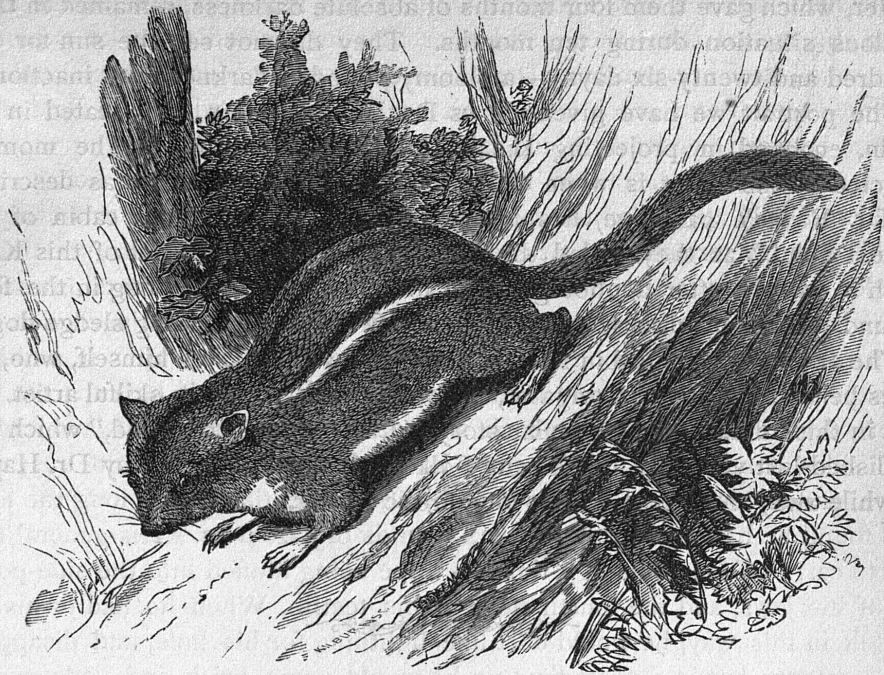 As winter comes on, Whiskey will go down into his hole, which has many long galleries and winding passages, and a snug little bedroom well lined with leaves. Here he will doze and dream away his long winter months, and nibble out the inside of his store of nuts.
