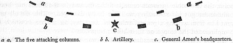On the following Wednesday the siege was renewed. I forget whether it was on that afternoon or the next that we lost Fort Slatter; but lose it we did, with much valuable ammunition and several men. After a series of desperate assaults, we forced General Ames to capitulate; and he, in turn, made the place too hot to hold us. So from day to day the tide of battle surged to and fro, sometimes favoring our arms, and sometimes those of the enemy.