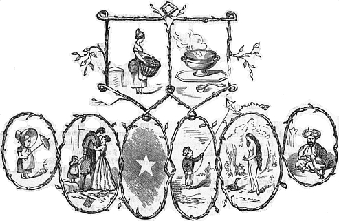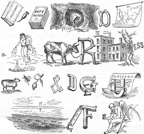 Some of our younger readers wish us to explain the construction of the Double Acrostic Charade. “Minnie’s,” which has gained one of the prizes, is pretty and ingenious, and is the first illustrated one we have ever seen. In hers, the two foundation words are first pictured, and beneath them the six words whose initial-letters spell the first foundation-word, and their last letters the second.