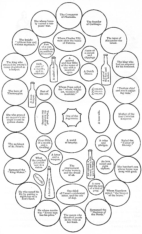 You see that a Double Acrostic Charade is easy enough to make, in this plain fashion. But when it is formed of two long words, and when every cross-word is explained by a verse of good poetry, it is quite another affair.