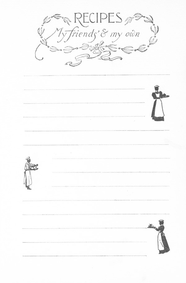 In order to make it as perfect as possible, we have gone carefully over the entire book, making such revision as experience has proven to be desirable. Some duplicate recipes have been omitted, others have been corrected and improved, and a valuable addition of new plain, practical, common-sense recipes have been added. Inexperienced housekeepers will find the book of great service, mostly all the recipes having been thoroughly tried and tested, and expressed in terms simple and easily understood by any person at all acquainted with housekeeping.