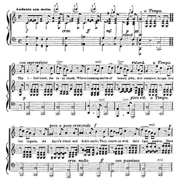 “Nay, sing, sister,” said Fanny; “’twill soothe his troubled spirit sooner. Sing something from Lucia di Lammermoor, and I will promise not to repeat my offence.”