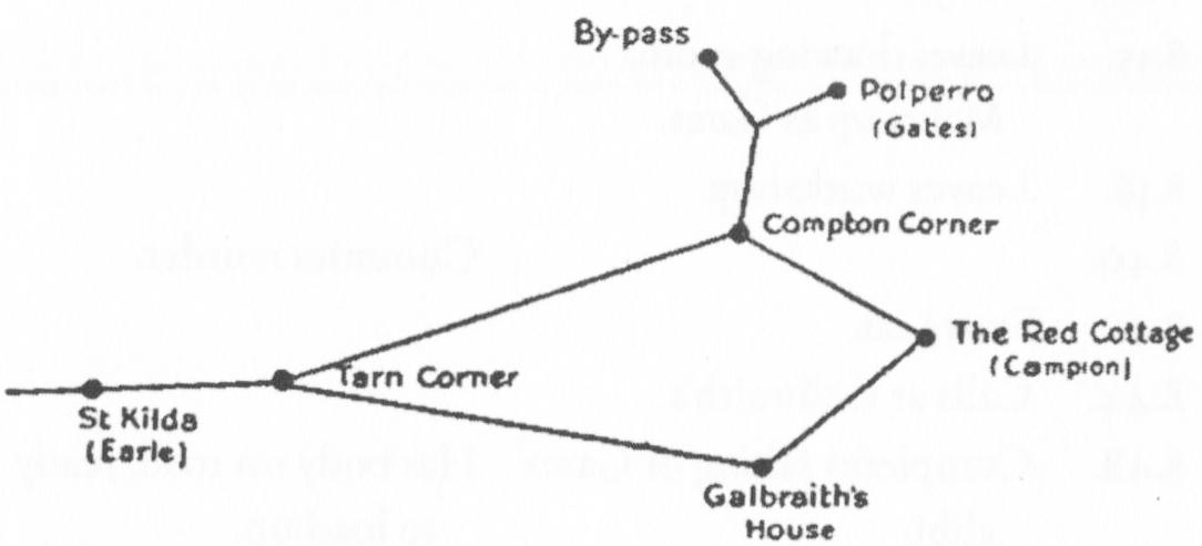 “Thinking over the thing in detail, I saw that Campion would just have had time to take out the car, pick up Gates near Polperro, run him to near St. Kilda, return to the Red Cottage, park the car somewhere close by, and take the dolls’ house to the drawing-room. I estimated that he could do it in 28 minutes, and he actually had occupied half an hour. After Campion then had made his alibi he would have taken the car again, gone back to near St. Kilda, picked up Gates and the body, run them to the by-pass, and returned home. Was there time for this?