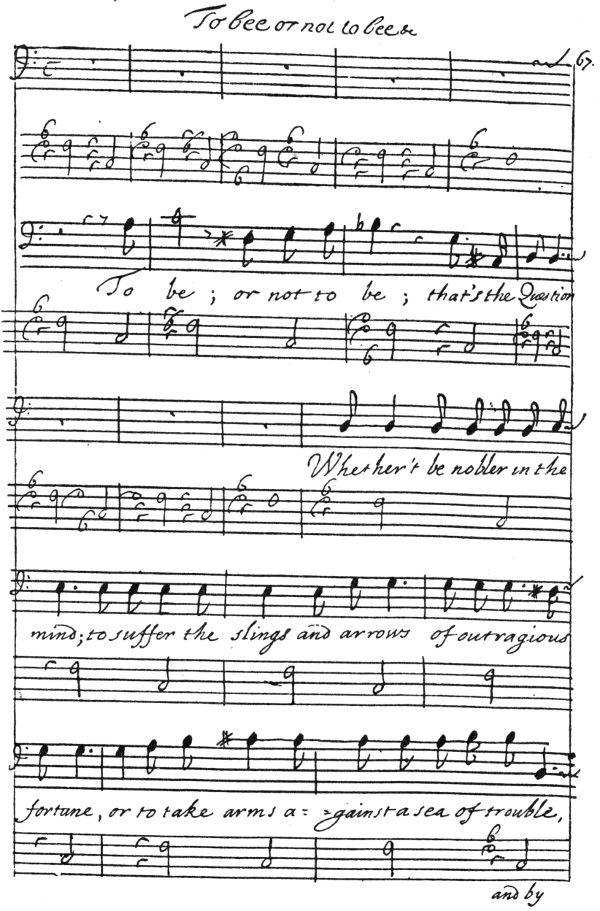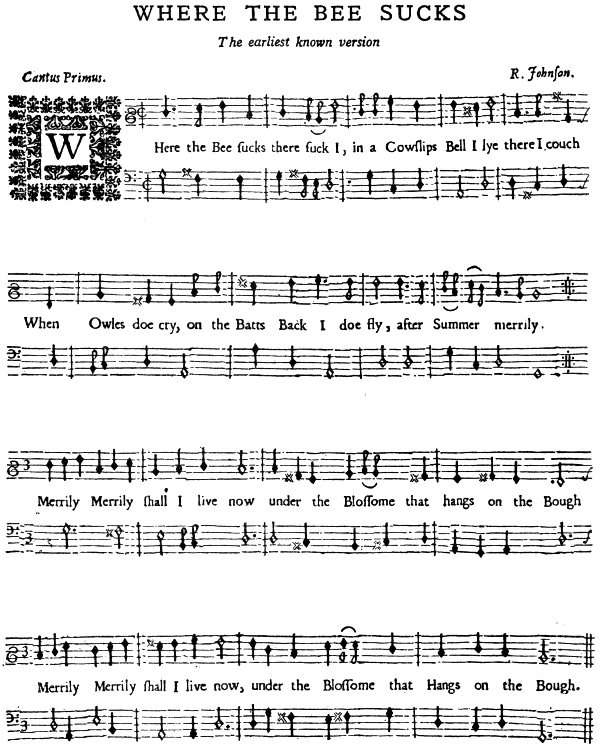 The prevalent study of music in Elizabethan times, and the use made of it by the upper classes in their houses—with their “chest of viols”—and the itinerant vendors of merchandise in London (as evidenced by the remarkable “Old Cryes” which I have had the good fortune to unearth), would make it advisable for any clever dramatist to introduce lyrics and instrumental music into his plays. And this is what Shakespeare did to a remarkable extent. It will be seen later on that, in some cases, he took lyrics with their settings which were popular, and inserted them, with some alteration of the words, in various plays. It was at one time thought that not a single note of the music originally written to Shakespeare’s plays was to be found. Professor Edward Taylor (one of my predecessors as Gresham Professor of Music) said in one of his lectures; “It is much to be regretted that the original music to all Shakespeare’s dramatic songs should have perished. No musical history with which I am acquainted contains any record of them, and no traces of their existence have I been able to discover.” We are in a better position now. The access to great libraries and the careful cataloguing of their contents have, with other things, enabled us to acquire some of these most interesting and valuable treasures, and it is to this music which formed part of the earliest representation of the plays, and also to the music written for Shakespeare’s 3 works later on in the seventeenth century, that I propose to direct attention.