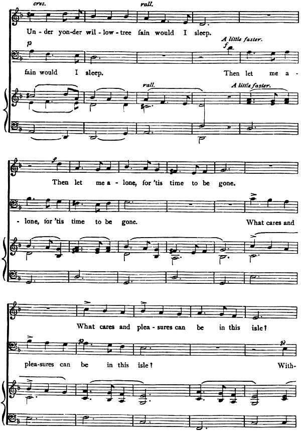 [8]A modern version of this and other songs in the book is published by Novello & Co., edited by Sir F. Bridge.