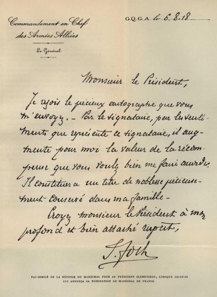 Le temps passa. Surprise! Un matin, fin 1916, je vois entrer chez moi le général Foch lui-même, fortement ému: