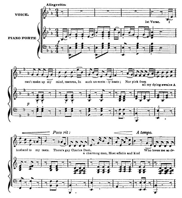 The regular visiter at these times is a black-eyed, cherry-cheeked cousin from Baltimore, a little given to flirting and dangerously fascinating, as graceful as a young fawn, and as frolicksome as a kitten. She always appears to have come down purposely for a romp, having left city affectations at home, and brought her graces with her. Then she wont go home until she has half a dozen of her cousins—from the third to the sixth remove—desperately in love with her, to keep them in mind of Cape May.