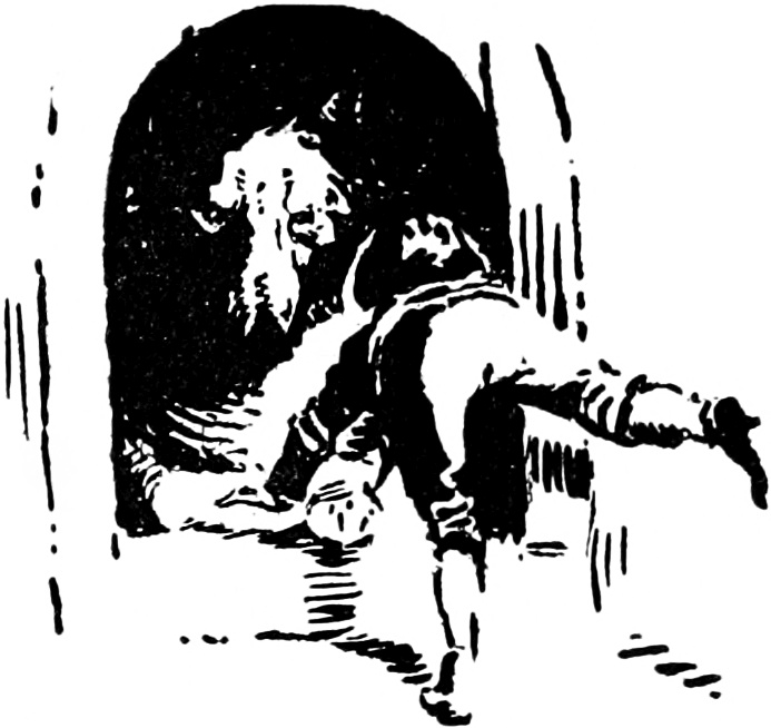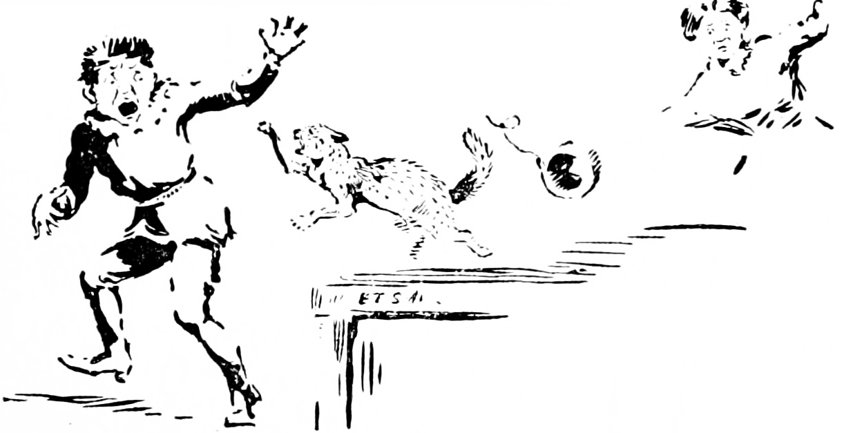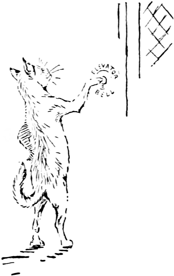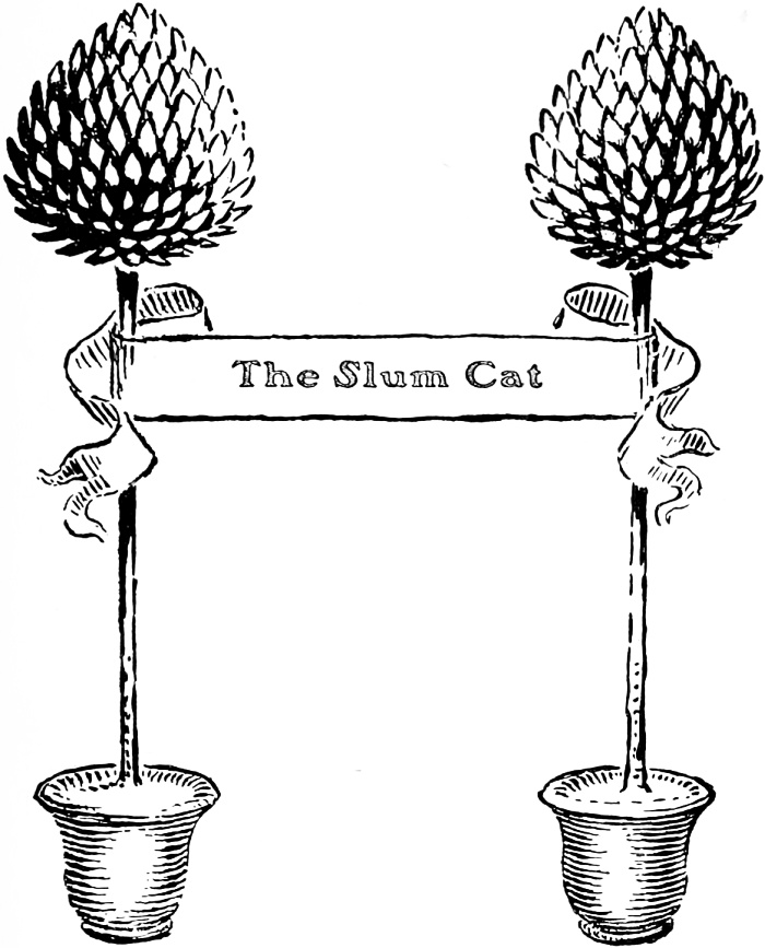 On the fifth day of ill luck the Slum Kitty ventured forth into the street, desperately bent on finding food. When far from the haven hole some small boys opened fire at her with pieces of brick. She ran in fear. A Dog joined in the chase, and Kitty’s position grew perilous; but an old-fashioned iron fence round a house-front was there, and she slipped in between the rails as the Dog overtook her. A woman in a window above shouted at the Dog. Then the boys dropped a piece of cat-meat down to the unfortunate; and Kitty had the most delicious meal of her life. The stoop afforded a refuge. Under this she sat patiently till nightfall came with quiet, then sneaked back like a shadow to her old iron-yard.