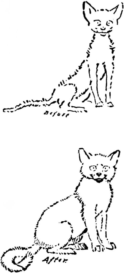 “Yow—w—w!” was the Yellow answer, as the blond Cat rose to full height and stepped with vast dignity a whole inch forward. “Yow—w!” and he went another inch, while his tail went swish, thump, from one side to the other.