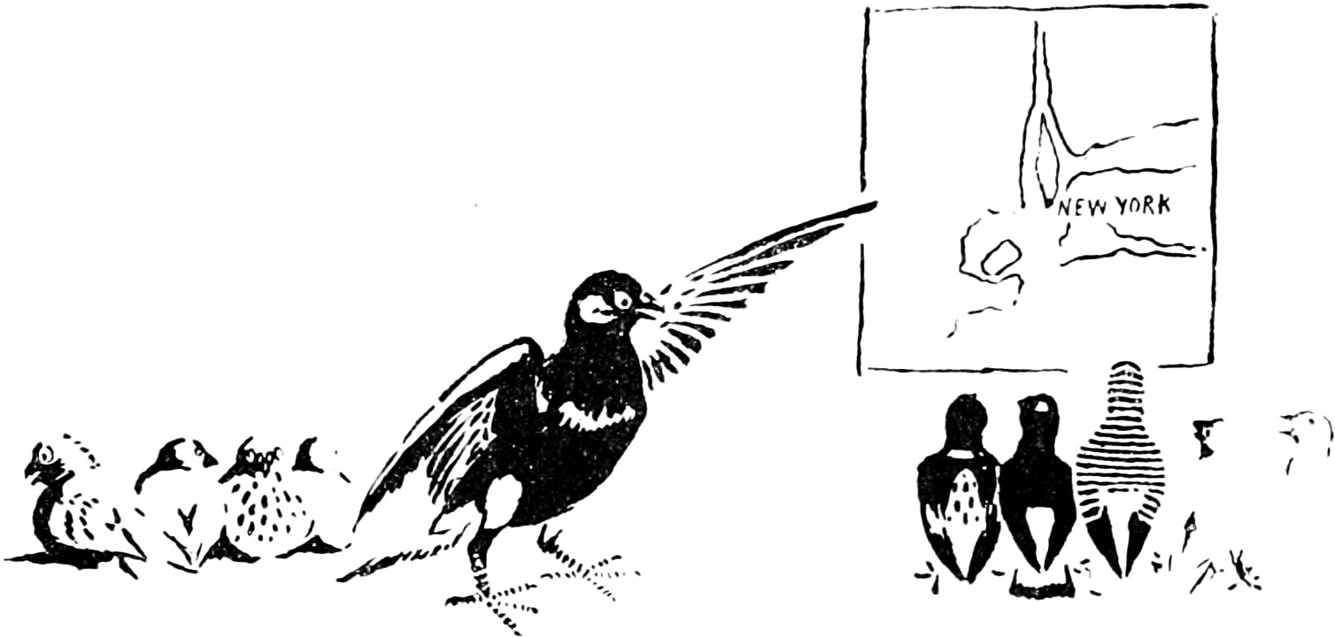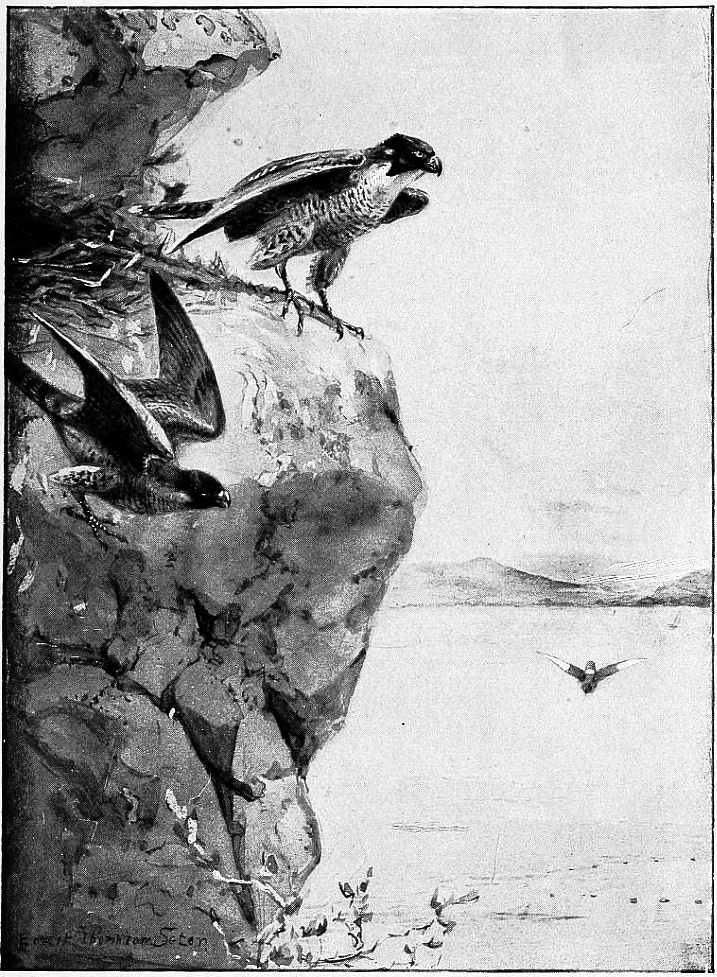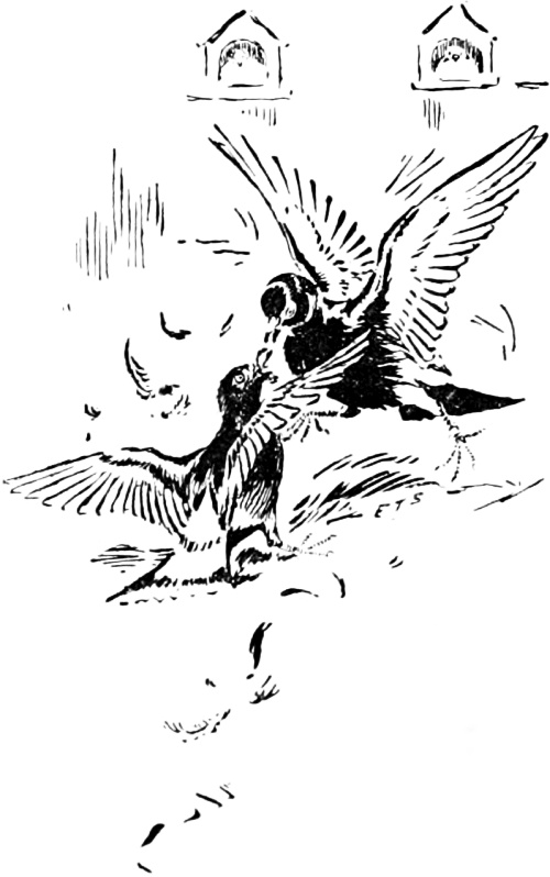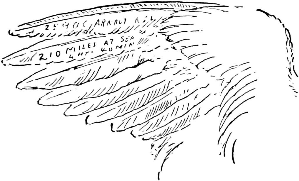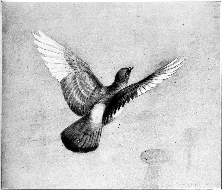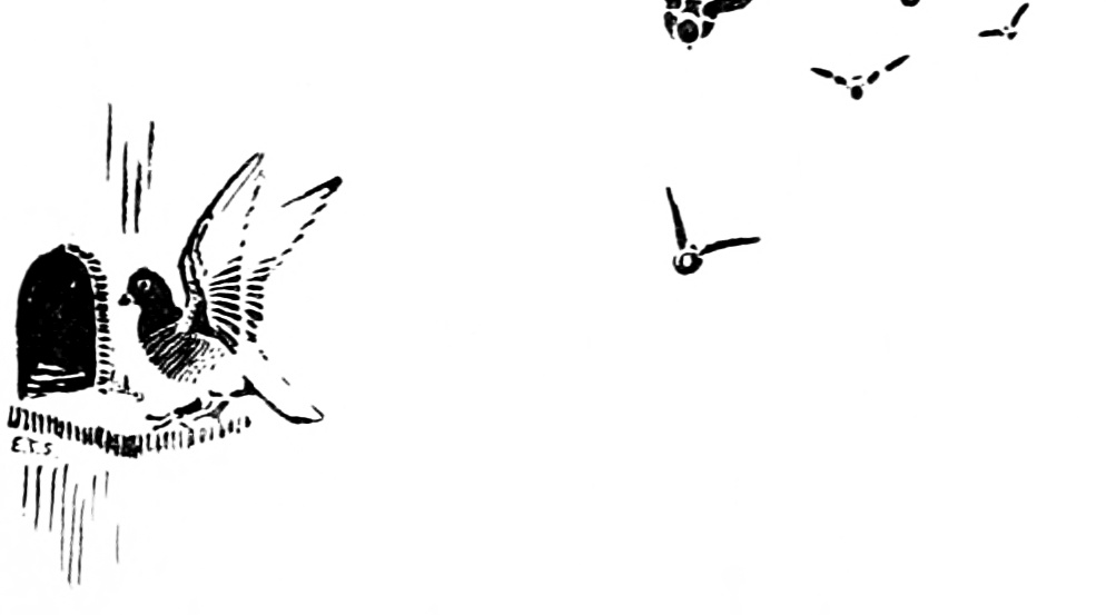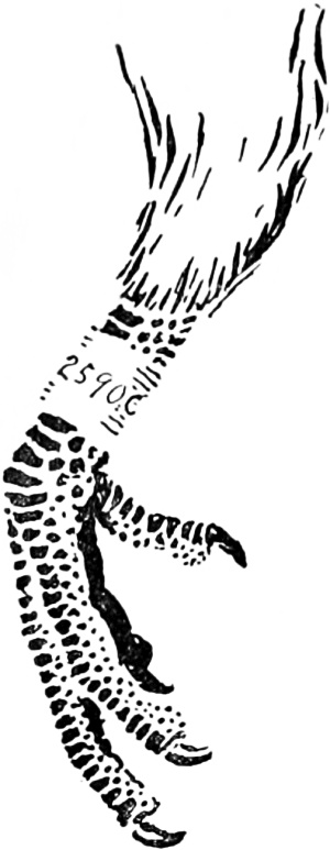 The nest of the destroying Peregrines, with its owners and their young, is now to be seen in the American Museum of Natural History of New York. The Museum authorities inform me that Pigeon badges with the following numbers were found in the nest: 9970-S, 1696, F 63, 77, J. F. 52, Ex. 705, 6-1894, C 20900. Perhaps some Pigeon-lover may learn from these lines the fate of one or other wonderful flier that has long been recorded “never returned.”