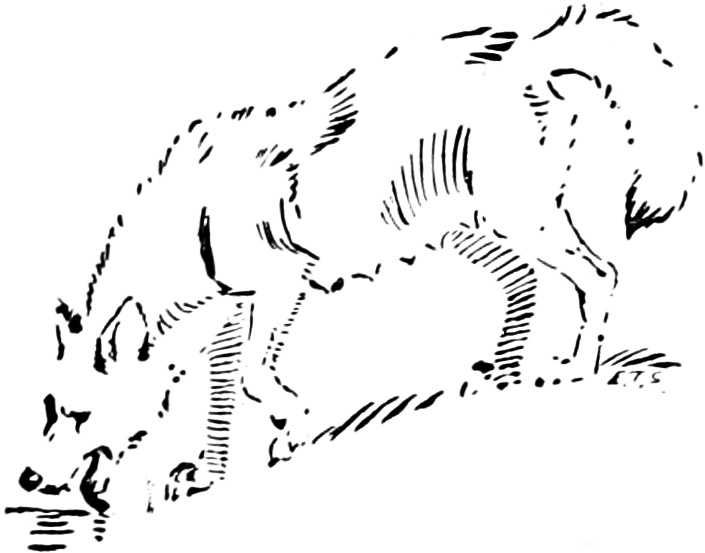 Sometimes she stood gazing blankly while the unchewed bunch of moss hung from her mouth, then roused to go on to the front as before; but the spells of vacant stare and the hankering to be alone grew stronger. She turned downward to seek the birch woods, but the whole band turned with her. She stood stock-still, with head down. They grazed and grunted past, leaving her like a statue against the hillside. When all had gone on, she slunk quietly away; walked a few steps, looked about, made a pretense of grazing, snuffed the ground, looked after the herd, and scanned the hills; then downward fared toward the sheltering woods.