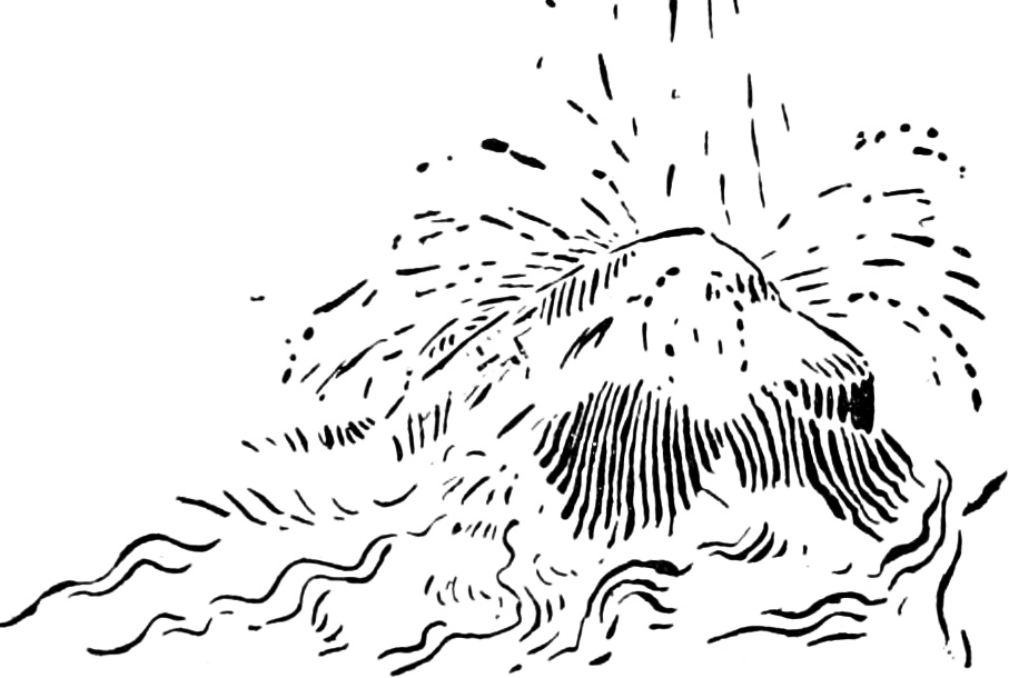 Borgrevinck was terrified and furious. He struck harder at the Storbuk as he bounded over the rougher snow, and vainly tried to control him. He lost his head in fear. He got out his knife, at last, to strike at the wild Buk’s hamstrings, but a blow from the hoof sent it flying from his hand. Their speed on the road was slow to that they now made: no longer striding at the trot, but bounding madly, great five-stride bounds, the wretched Borgrevinck strapped in the sled, alone and helpless through his own contriving, screaming, cursing, and praying. The Storbuk with bloodshot eyes, madly steaming, careered up the rugged ascent, up to the broken, stormy Hoifjeld; mounting the hills as a Petrel mounts the rollers, skimming the flats as a Fulmar skims the shore, he followed the trail where his mother had first led his tottering steps, up from the Vand-dam nook. He followed the old familiar route that he had followed for five years, where the white-winged Rype flies aside, where the black rock mountains, shining white, come near and block the sky, “where the Reindeer find their mysterie.”