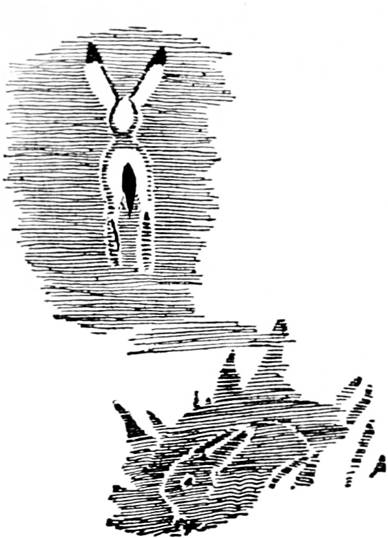The band came drifting our way, feeding like Sheep, grunting like only themselves. Each one found a grazing-spot, stood there till it was cleared off, then trotted on crackling hoofs to the front in search of another. So the band was ever changing in rank and form. But one there was that was always at or near the van—a large and well-favored Simlé, or Hind. However much the band might change and spread, she was in the forefront, and the observant would soon have seen signs that she had an influence over the general movement—that she, indeed, was the leader. Even the big Bucks, in their huge velvet-clad antlers, admitted this untitular control; and if one, in a spirit of independence, evinced a disposition to lead elsewhere, he soon found himself uncomfortably alone.