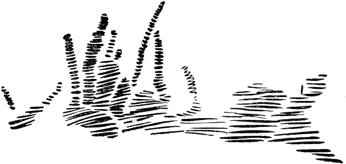“Meat! Meat!” and louder; then the centre of attraction came in view—a rough, dirty little man with a push-cart; while straggling behind him were a score of Cats that joined in his cry with a sound nearly the same as his own. Every fifty yards, that is, as soon as a goodly throng of Cats was gathered, the push-cart stopped. The man with the magic voice took out of the box in his cart a skewer on which were pieces of strong-smelling boiled liver. With a long stick he pushed the pieces off. Each Cat seized on one, and wheeling, with a slight depression of the ears and a little tiger growl and glare, she rushed away with her prize to devour it in some safe retreat.