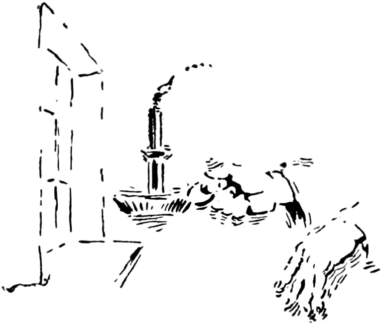 One night the mother Cat smelt a wonderful smell that came from the East River at the end of the alley. A new smell always needs investigating, and when it is attractive as well as new, there is but one course open. It led Pussy to the docks a block away, and then out on a wharf, away from any cover but the night. A sudden noise, a growl and a rush, were the first notice she had that she was cut off by her old enemy, the Wharf Dog. There was only one escape. She leaped from the wharf to the vessel from which the smell came. The Dog could not follow, so when the fishboat sailed in the morning Pussy unwillingly went with her and was seen no more.