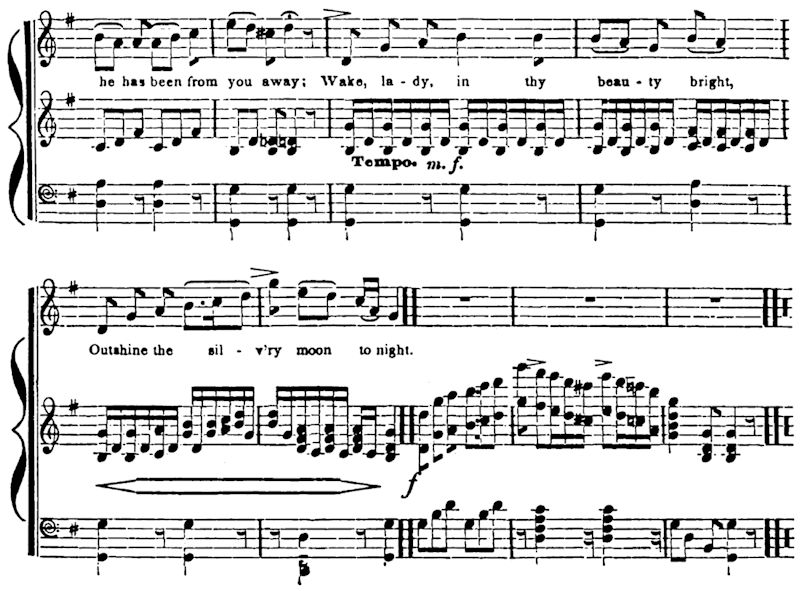 And so he swore to her, when he stole that night, as he had done nightly since their marriage, to her chamber, after every light was extinguished, and, as he believed, every eye closed in sleep; and she, fond soul! believed him, and clasped him to her heart, and sunk into sleep, with her head pillowed on his breast, happier than she had been since she had once—for the first, last time—deviated from the paths of truth.