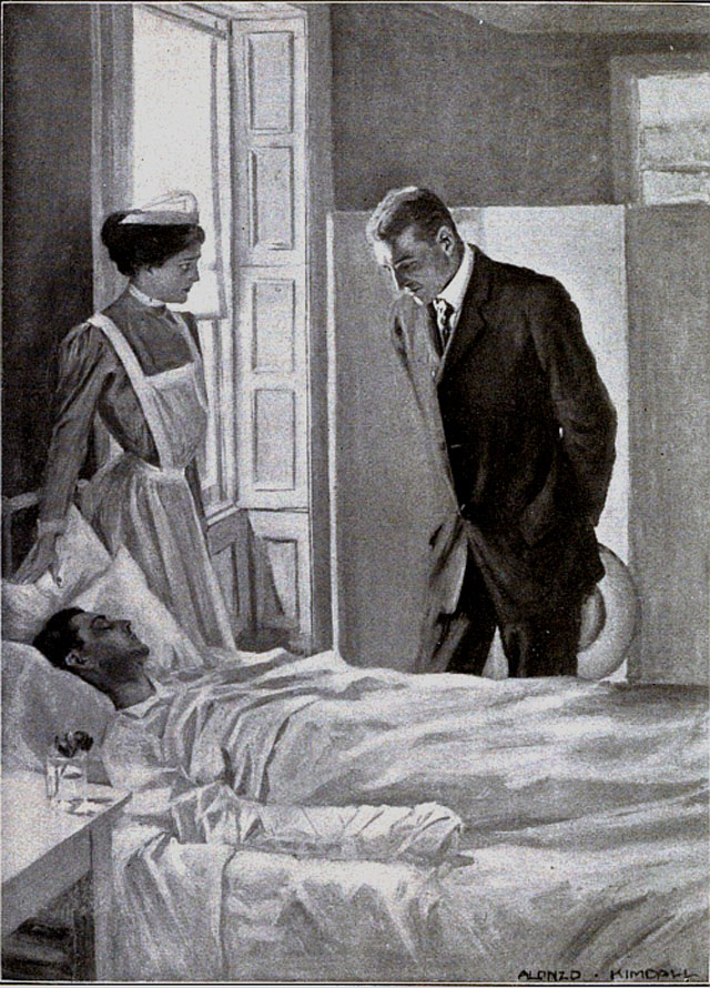 He stood by her in silence, his eyes on the injured man Frontispiece