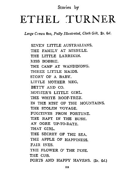 | I. | — | HOLIDAYS AT BILLABONG | 9 |