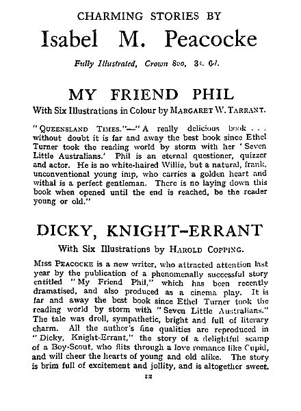 “Never mind—we’ll bring you a large bunch of assorted German scalps when we come back from the Front,” said Wally. “They’ll look lovely in the hall at Billabong, among the native weapons!”