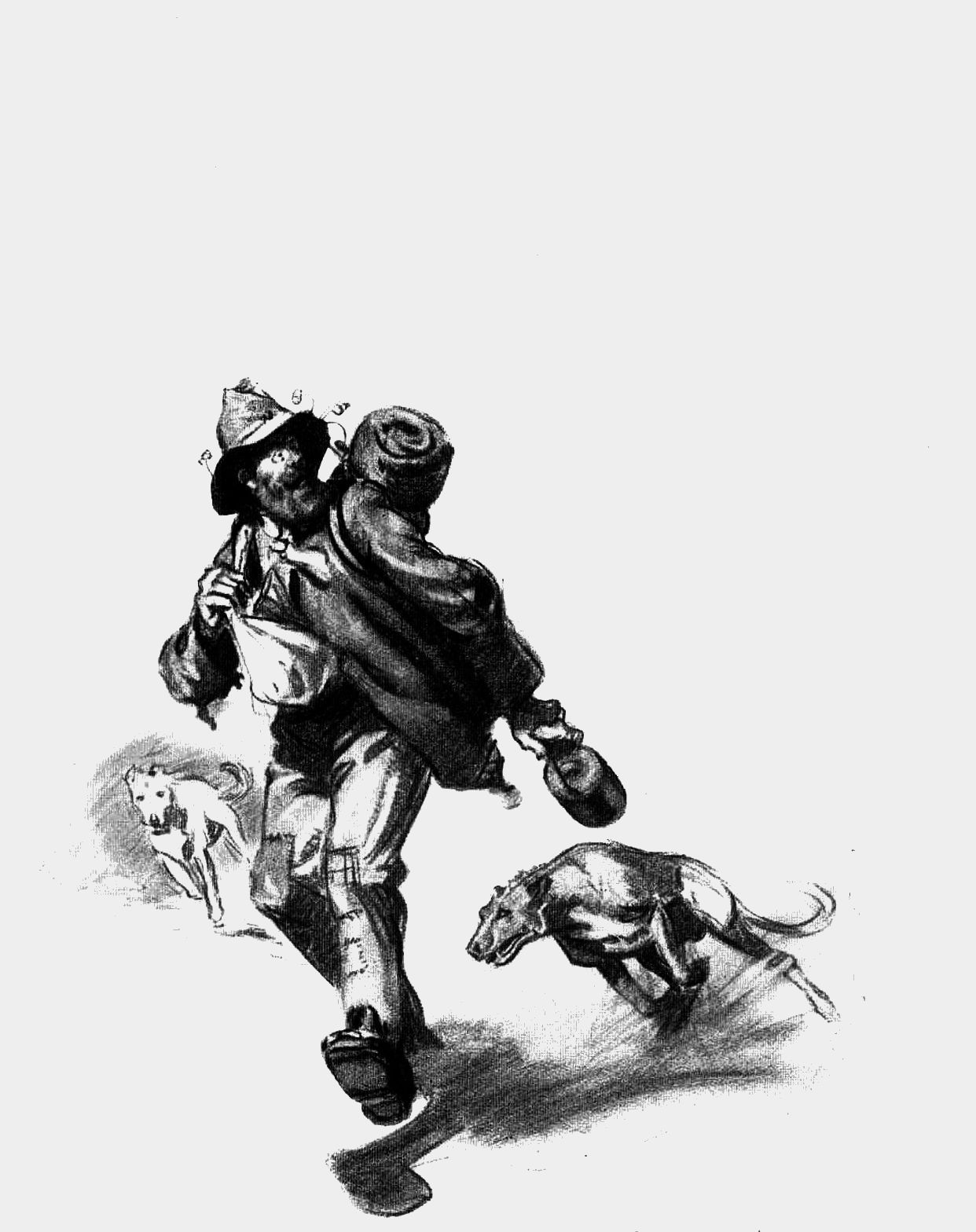 He got up, stretching himself, and went to the edge of the verandah—a mighty figure of a man, well over six feet, with broad shoulders and a loosely hung frame indicative of great strength. His hair and close-cropped beard were turning grey; but the whole face held an indefinable boyishness, due perhaps to the twinkle that was never far from the deep-set eyes. As he watched, the chorus of barking drew nearer, the gate in the porch swung open, and a native boy came through, his black face a startling contrast to his white shirt and spotless moleskin breeches. He grinned broadly as he neared the verandah.