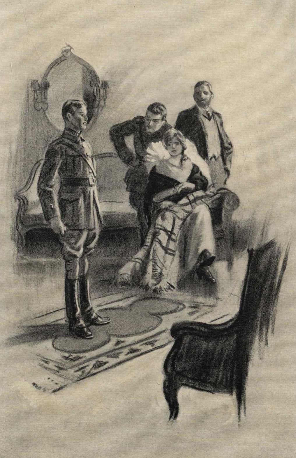 “Hallo, Norah, I’m so glad you’re up! Better?—truly—honest? You look a bit sorry on it—poor old girl. We’re going to get you out this afternoon—the sun is actually shining, and goodness knows, it may never occur again!” He brought his heels together with a click, standing before her, tall, and straight, and merry. “How does the kit look, Nor?”