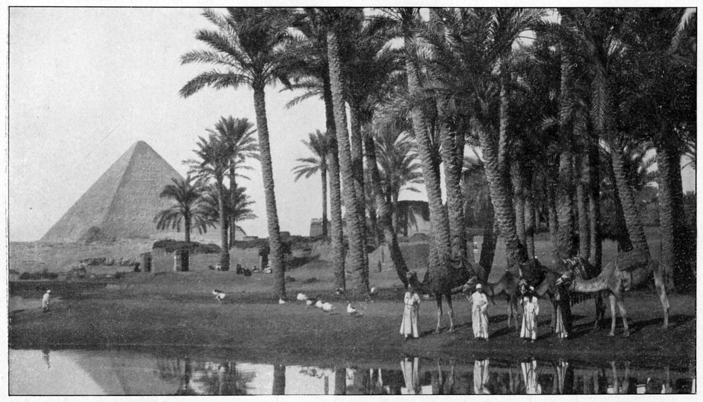 Yr o’em y’nghysgod y Pyramidie o hyd. Tyfent arnom fel y nesem atynt, ac ymddangosent i mi fel pe blotient y ffurfafen i’r cyfeiriad hwnw allan o’r golwg. Ar ol cydredeg am yn agos filldir â’r darn prydfertha o’r ffordd, a choed talion y palmwydd yn tyfu bob ochr iddi o fewn pellder mesuredig i’w gilydd, cyraeddasom yr orsaf. Yr oedd y gwres yn fawr, ond nid yn llethol. Rhuthrwyd i gael tamed o fwyd cyn troedio’r tywod, ond yr oedd yno erill can newynog a nine. Ni weles gynifer o glêr yr un pryd erioed yn fy mywyd. A’r fath glêr! Prin y gwelech y plât, heb sôn am y bwyd arno. Dilynent y tamed i’r gene, ac yr oedd ambell un yno o’i flaen. Nid wyf am wadu na lynces o honynt y pymtheng munud hwnw ddigon i ffurfio gwladfa gysurus. Yr oedd eu sŵn yn boddi’r siarad, a phrysurasom ymaith ar ol talu am y clêr.