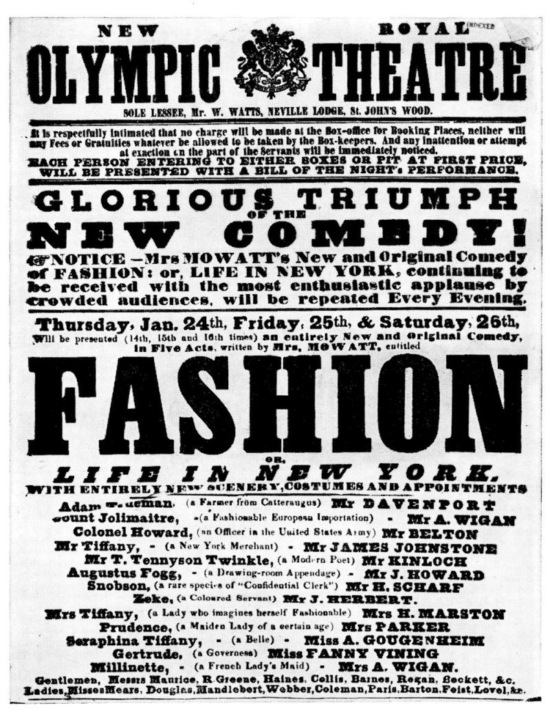 2. The “eye-witness” of the première of Fashion was A. Oakey Hall, whose account of the occasion (from which I have drawn heavily) was published in The Dramatic Magazine, Chicago (March 1898).