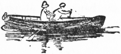 Right in the bows of the Death and Glory were Bill and Pete, looking over at the flurry of foam from her fast towing. In the middle of the boat were the Hullabaloos, and in the stern, steering, with a face of simple happiness and pride, was Joe. His white rat crawled slowly from one shoulder to the other round his neck, but Joe’s eyes never shifted from the stern of the Teasel, and his steering was as steady as Tom’s own.