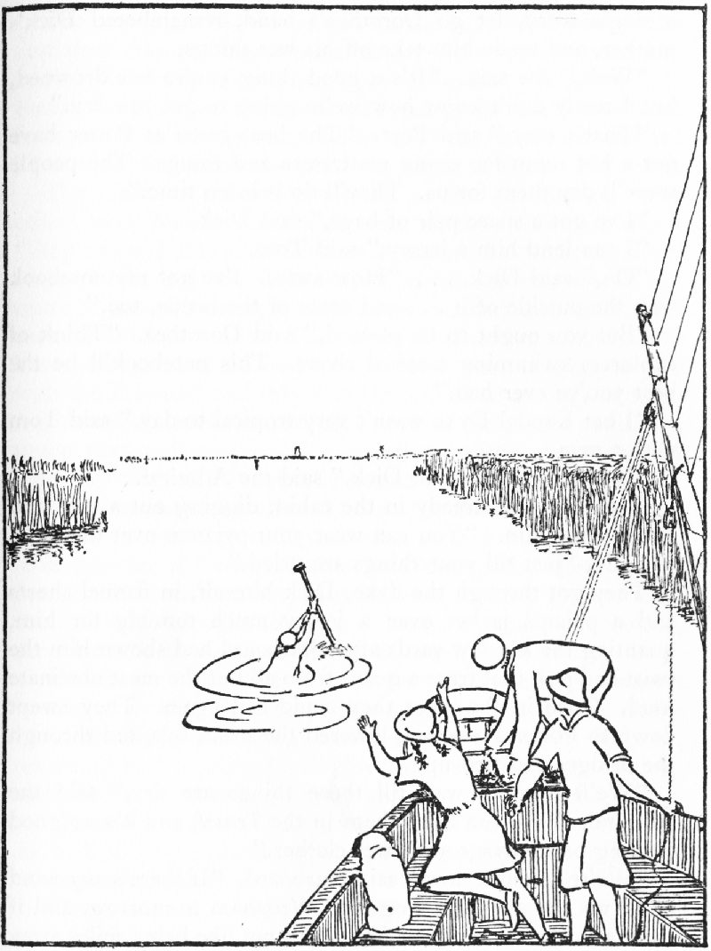 “Stow that now,” he said. “What ye shoutin’ about? Fare to me that if it hadn’t a been for these young folk ye’d be too full o’ Breydon water to be talkin’ to ’em like that. Let be, say I, and be thankful for a dry skin. . . .”