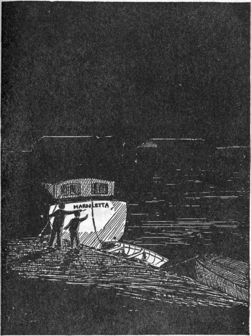 Tom went forward. And then, for a moment, he forgot that he had a mast to lower. He was looking at the after-cabin of the Margoletta, a melancholy island in the water. For some minutes they had heard nothing of the loud-speaker. Now, suddenly, they heard it again.