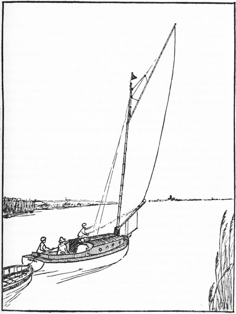 Well above Breydon railway bridge a yacht was hoisting the peak of her mainsail. The Come Along must have brought her through from the Bure, for there, already more than half-way between that yacht and the Teasel, there was the little tow-boat, with the red and white flag, coming up Breydon at a tremendous pace. Old Bob had seen that something was amiss.