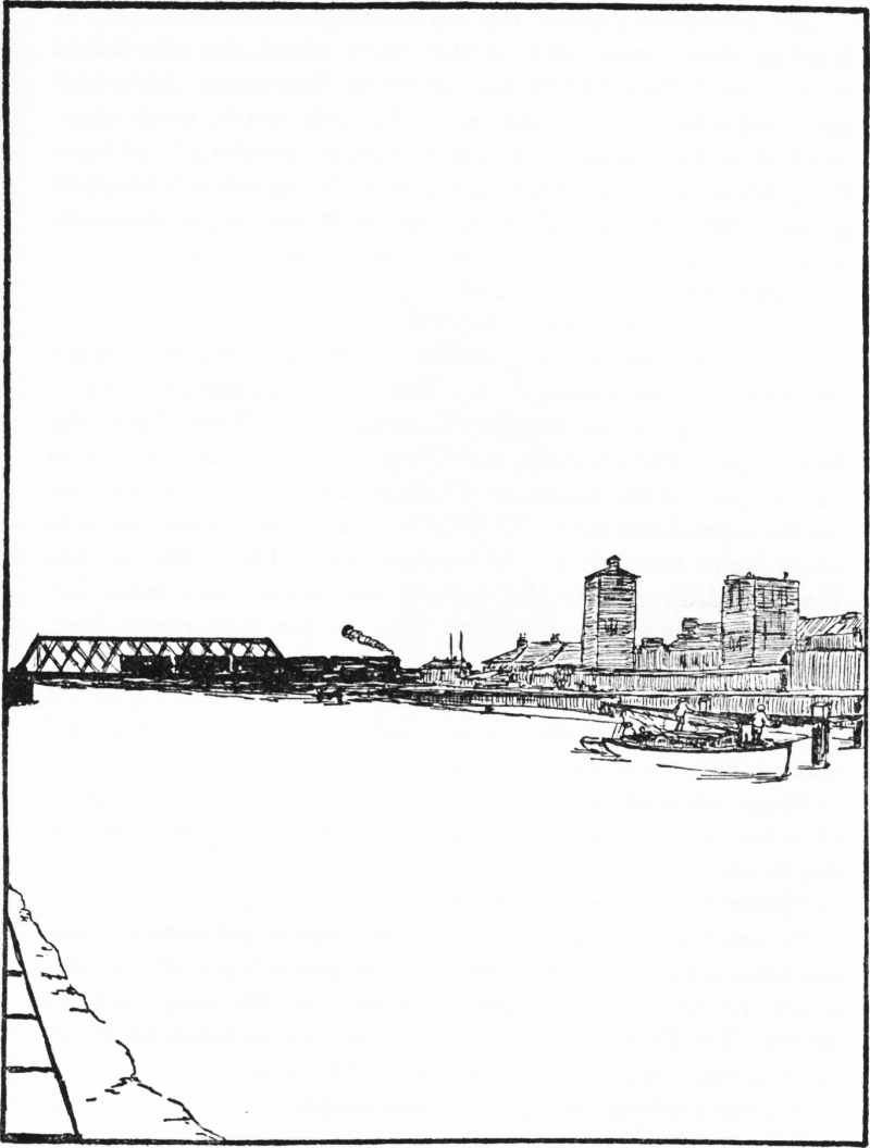 “I suppose there’s no chance now of getting through Yarmouth until to-morrow morning,” said the Admiral. “The tide seems to be running very hard.”