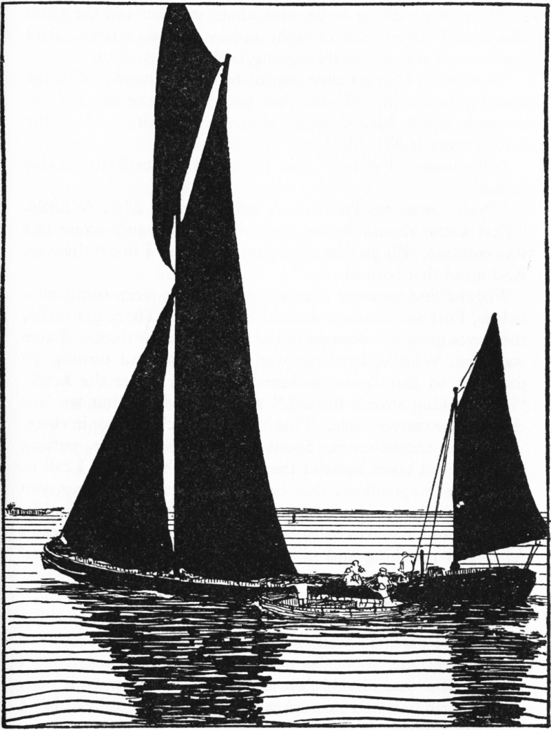 Old Bob laughed again. “Take ye through now,” he said. “Tide or no tide. When the Come Along say ‘Come along,’ they got to come along. I’ll be taking this party down to Yarmouth and I’ll be taking you at the same time. If you’ll be ready to have your mast down for the bridges. You’ll have the tide with you up the North River.”