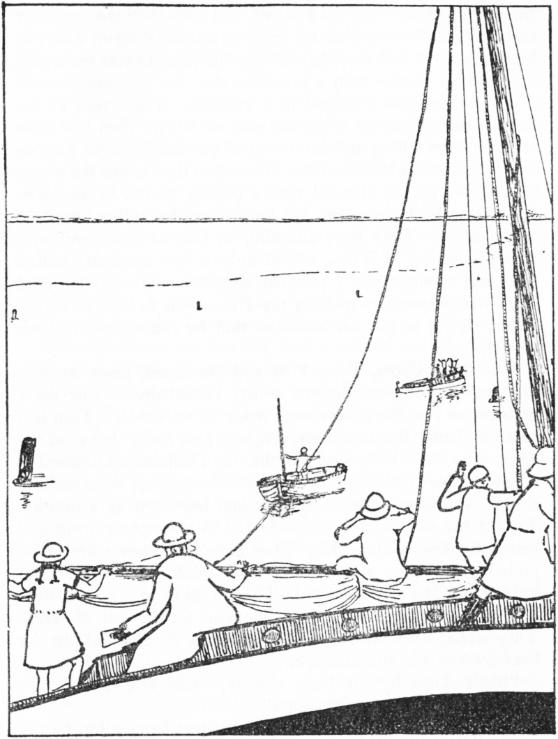 The Margoletta’s dinghy was left in charge of a friend of Old Bob’s until Rodley’s man should arrive. Then the Admiral and the skipper of the Come Along had a word or two together, and the Admiral told the others something of what she meant to do. “It’ll take those three far too long to get up the river in that old boat. We’d better give them a tow.”