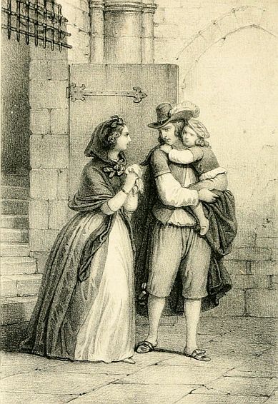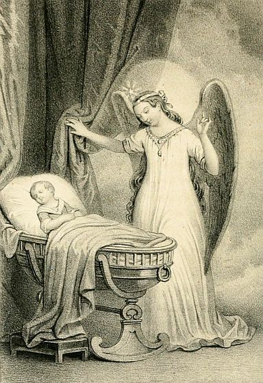 L’ermite étend sa main sur l’enfant; ses cris cessent, ses douleurs se calment, ses forces reviennent, ses traits décolorés reprennent quelque couleur; il se soulève en riant et vient jouer avec le bâton de voyage du saint prédicateur. Sa mère le presse contre son sein, le couvre de ses baisers et le voit bientôt s’endormir calme et tranquille.