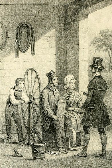 Après quelques instants d’une marche rapide, il s’arrête à la porte d’une chaumière, il entre et fait signe à Martin de le suivre. Aussitôt une femme s’élance au-devant d’eux; ses vêtements sont en désordre, ses yeux égarés, et sa poitrine haletante soulève les longues tresses de ses cheveux détachés.