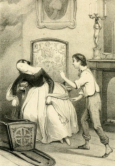 Sans prononcer un seul mot, elle saisit la main de Martin et lui montre, sur l’âtre du foyer, son enfant. Le pauvre petit s’épuise en efforts impuissants; des convulsions affreuses le déchirent...