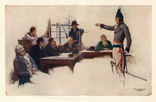 ‘Naturally,’ said Chauvinière. ‘Justice and humanity must agree that this afflicted girl is in no case to plead; and the Revolutionary Tribunal has too high a sense of its duties to wish to arraign a person who is, be it temporarily or permanently, without the wit to defend herself. If you will send your certificate to the Public Accuser to-day, your responsibility in the matter ends. Citizens, there is no reason to detain you.’
