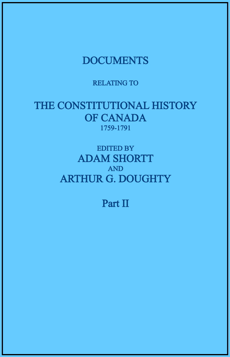 Title: Documents Relating to the Constitutional History of Canada 1759-1791, Part II