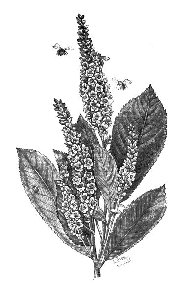 The engraving which we give of this shrub will give our readers a better idea of the appearance of its flowers and the form of its flower spike and leaves than it is in our power to give by any verbal description. We call attention to it again, because it is extremely hardy, capable of enduring our winters with impunity, and because its season of bloom is so late as to make it very desirable on account of the scarcity of shrubs in bloom at that time, and its period of bloom is so protracted as to make it a very ornamental object on the lawn for several weeks. But it is more especially our bee-keepers to whom we desire to commend this shrub. The honey it yields is of the finest quality, and is produced in great abundance, and that at a time when the flowers of spring and early summer are gone, when the bees have gathered their supplies from the basswood and white clover. This shrub affords them a bountiful supply during a period of the year when it is very difficult for them to obtain any. We believe it would be a very profitable investment for those who are interested in the production of honey to plant this shrub by the hundred or thousand in order to supplement the honey yielding plants that are to be found in this country. This shrub commences to bloom at an early age, can be transplanted with great ease, flourishes in every soil, and seems to be quite free from the depredations of insect enemies. It certainly gives promise of being a most valuable acquisition to our list of honey-producing plants. We believe it can be procured from nurserymen at a reasonable rate and in large quantities.