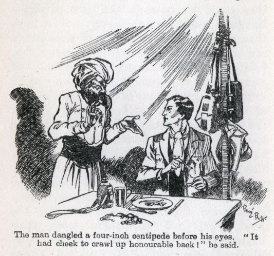 THE MAN DANGLED A FOUR-INCH CENTIPEDE BEFORE HIS EYES. "IT HAD CHEEK TO CRAWL UP HONOURABLE BACK!" HE SAID