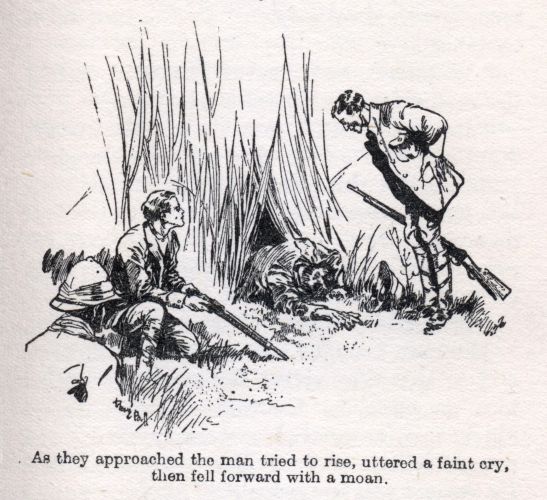 AS THEY APPROACHED, THE MAN TRIED TO RISE, UTTERED A FAINT CRY, THEN FELL FORWARD WITH A MOAN