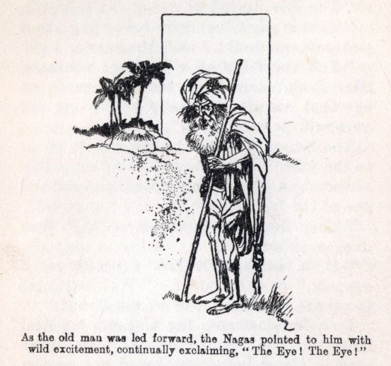 AS THE OLD MAN WAS LED FORWARD, THE NAGAS POINTED TO HIM WITH WILD EXCITEMENT, CONTINUALLY EXCLAIMING, "THE EYE! THE EYE!"