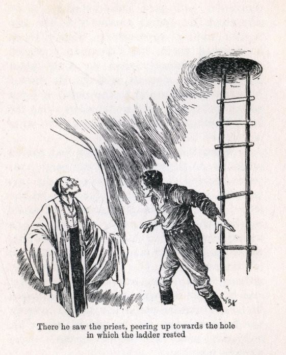 THERE HE SAW THE PRIEST, PEERING UP TOWARDS THE HOLE IN WHICH THE LADDER RESTED