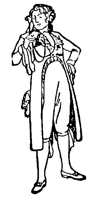 Chauvelin stands in the doorway with his back to the room and to Marguerite, his claw-like hands intertwined convulsively behind him. The silhouette of the two remaining soldiers are still visible; they stand silently and at attention with their muskets in their hands. Between them and Chauvelin hovers the tall, ungainly figure of a man, clothed in rags and covered in soot and coal-dust. His feet are thrust into wooden shoes, his grimy hands are stretched out each side of him; and on his left arm, just above the wrist, there is an ugly mark like the brand seared into the flesh of a convict.