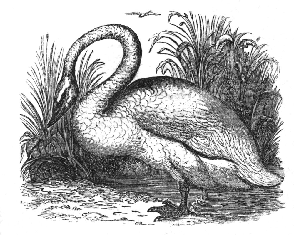 In all ages these birds have enjoyed a considerable degree of fictitious interest, and, therefore, beside the exaggeration of the musical power of their “sweet voices,” there are various other improbable things alleged of them. For instance, it is said that when the frost begins to set in they assemble in multitudes and keep the water in a state of agitation to prevent it from freezing. The fact is, that all the agitation a flock of swans could produce in a lake would but make it freeze the more rapidly. It is probable, however, that they break the ice, when it is thin, and continue breaking it at the same place as fast as it freezes, as is the habit of very many animals in the winter season.