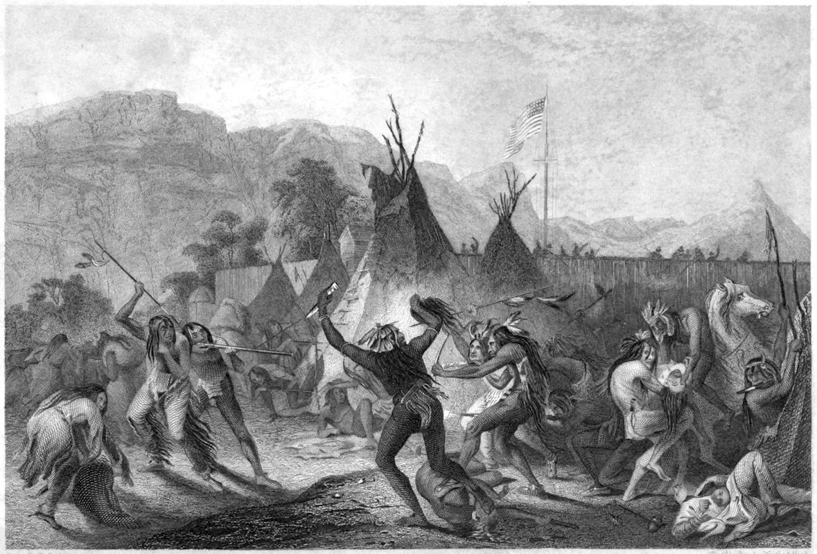 “On the 28th of August, at break of day, we were awakened by musket-shot; and Doucette entered our room crying, ‘levez-vous il faut nous battre!’ On which we arose in haste, dressed ourselves, and loaded our fowling-pieces with ball. When we entered the court-yard of the fort, all our people were in motion, and some were firing from the roofs. On ascending it, we saw the whole prairie covered with Indians, on foot and on horseback, who were firing at the fort; and on the hills were several detached bodies. About eighteen or twenty Black-Feet tents, pitched near the fort, the inmates of which had been singing and drinking the whole night, and fallen into a deep sleep toward morning, had been surprised by 600 Assiniboins and Crows. When the first information of the vicinity of the enemy was received from a Black-Foot, who had escaped, the engages immediately repaired to their posts on the roofs of the buildings, and the fort was seen to be surrounded on every side by the enemy, who had approached very near. They had cut up the tents of the Black-Feet with knives, discharged their guns and arrows at them, and killed and wounded many of the inmates, roused from their sleep by this unexpected attack. The men, about thirty in number, had partly fired their guns at the enemy, and then fled to the gates of the fort, where they were admitted. They immediately hastened to the roof, and began a well supported fire upon the Assiniboins.